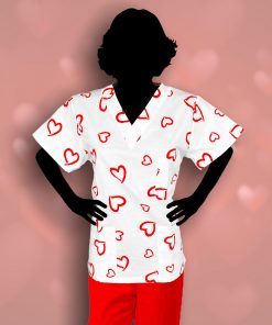 Krásná zdravotnická košile s červenými srdíčky. Doporučujeme k ní nosit pudrově modré, bílé nebo šedé kalhoty .