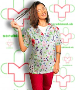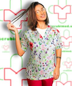 Schönes medizinisches Hemd mit einem Muster der Frühlingsblumen.